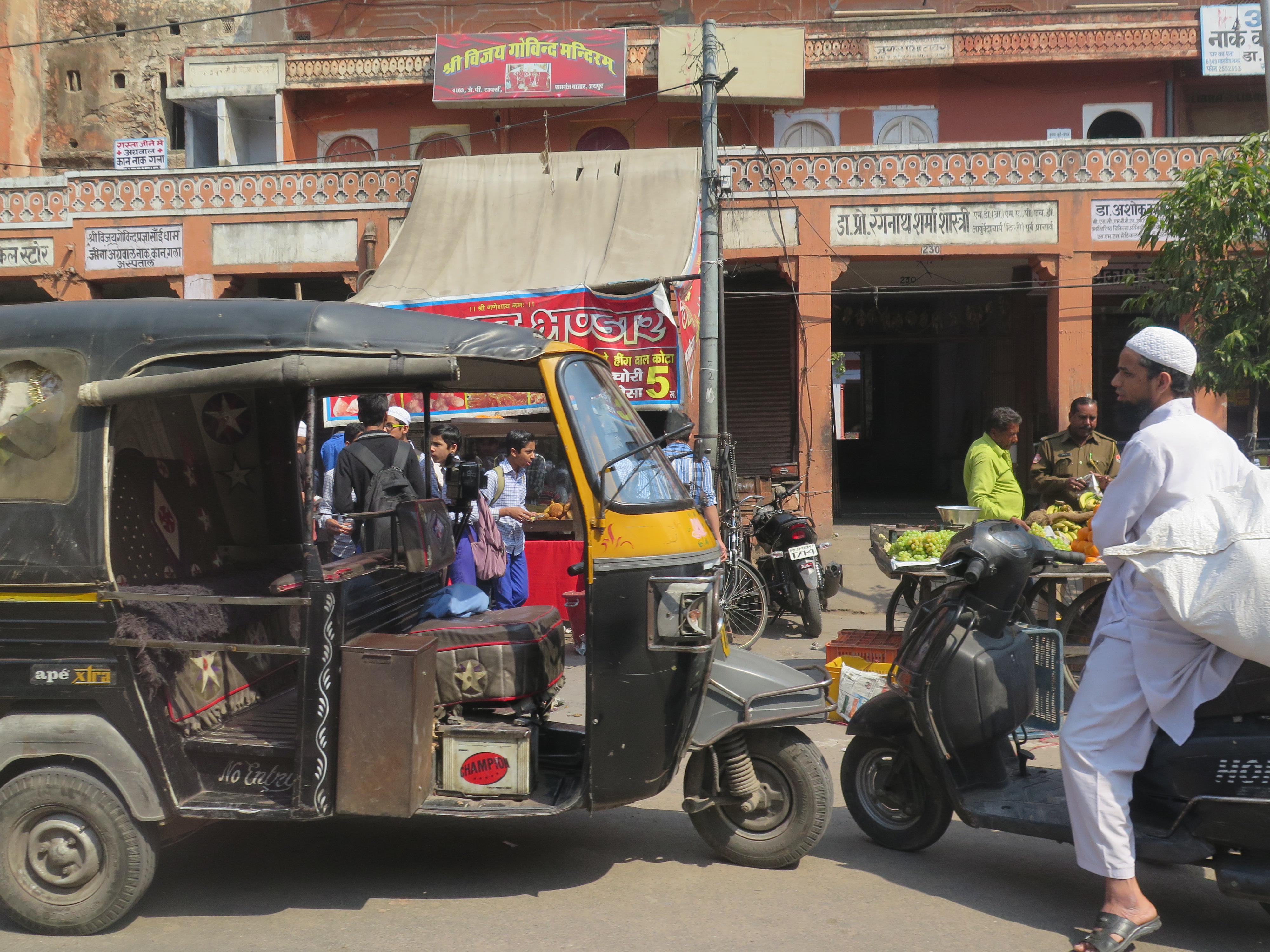 Você pode contratar um motorista ou pode andar de tuk tuk. Quando estiver no hotel ou no restaurante, é só pedir para chamarem um tuk tuk para você. Sempre negocie o preço antes de entrar, se ele cobrar mais de 50 rúpias por pessoa em um trajeto dentro da cidade procure outro tuk tuk ou negocie com ele.