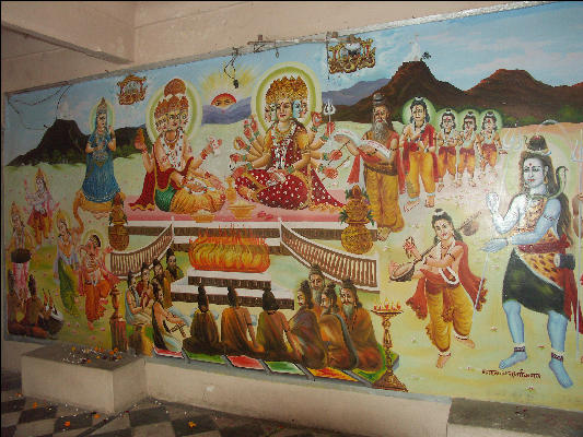 Lord Brahma, então, desceu à Terra para realizar uma celebração sagrada (holy yagna). Quando chegou a hora sagrada para a oferta final em frente a fogueira sagrada, a esposa de Lord Brahma, Savitri avisou que chegaria atrasada. Irritado com sua demora e com o risco do fracasso desta celebração sagrada, Lord Brahma pediu a Lord Indra para encontrar-lhe uma nova esposa. Ele então se casou com uma filha de “Gujar”, que foi purificada. Vishnu, Shiva e todos os brâmanes santificaram este encontro. A nova esposa foi então renomeada como Gayatri.