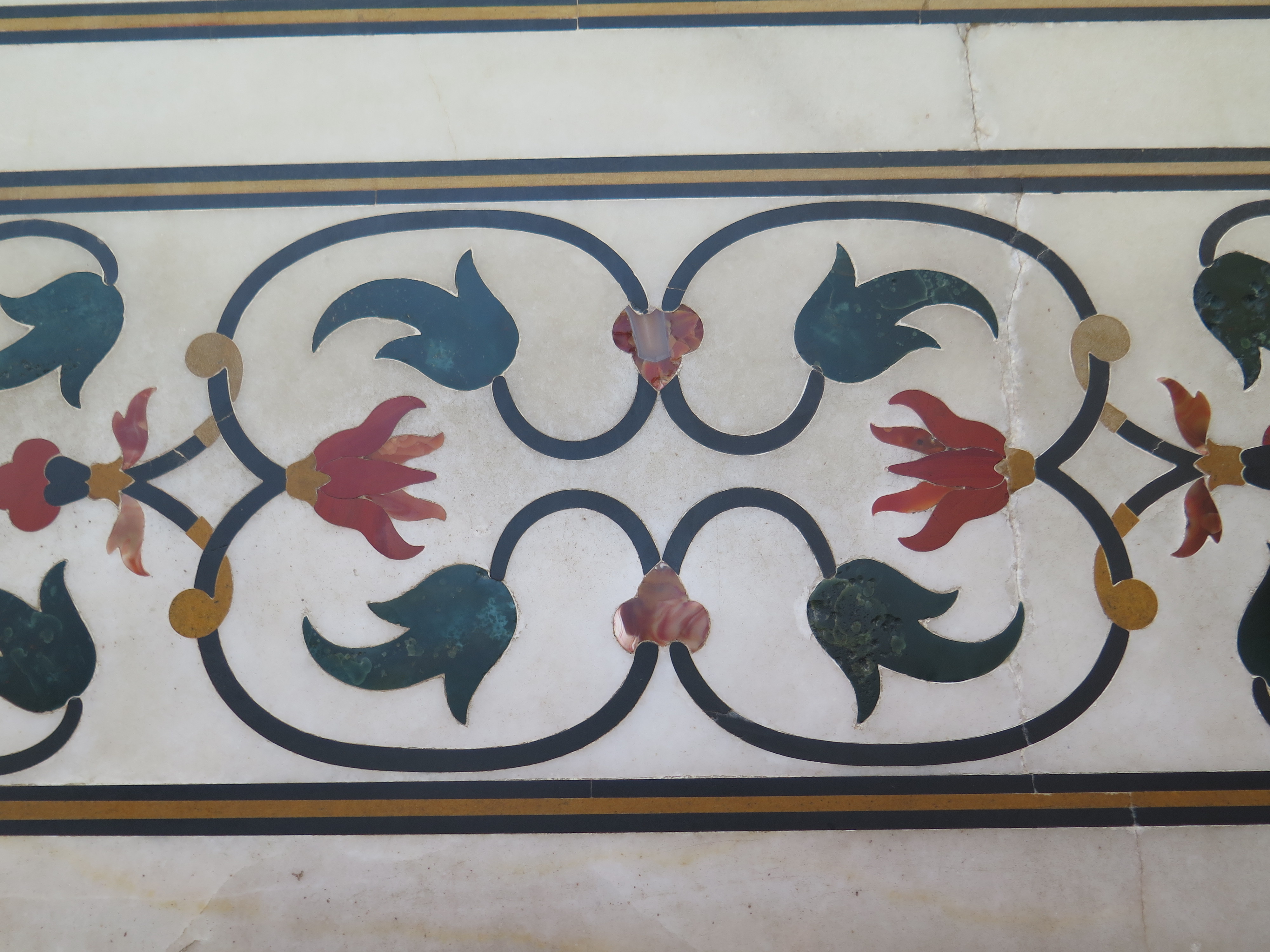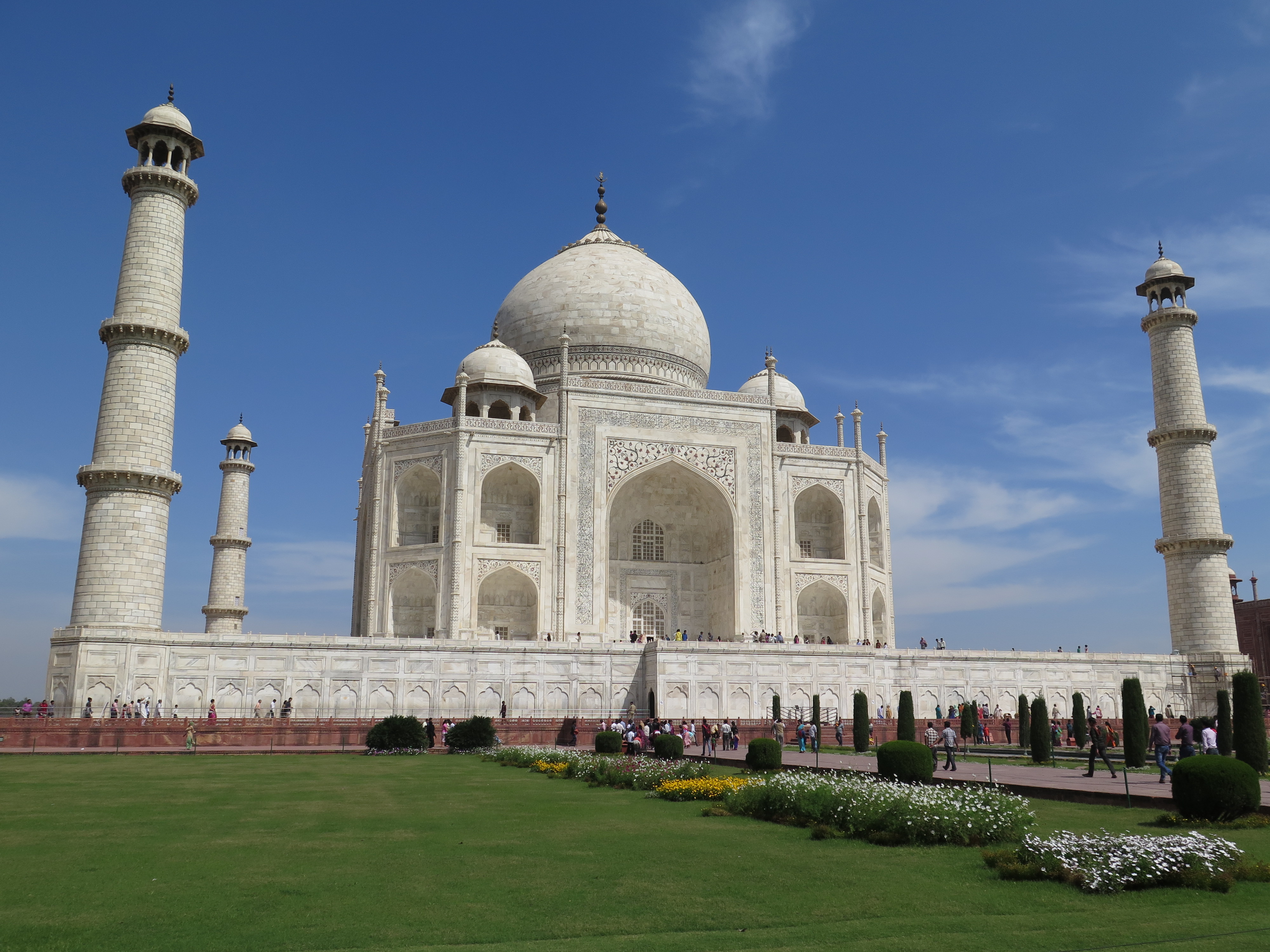Os jardins são fantásticos, imensos, de uma luz própria difícil de imaginar e e de explicar. La você consegue tirar fotos incríveis. Dentro do Taj Mahal você não pode tirar fotos (a sua câmera pode ficar com você, porém desligada e de preferencia dentro de uma bolsa), o lado de dentro não é tão grande quanto se imagina olhando de fora, é escuro e tem muitos desenhos no mármore que dão uma visão incrível quando você direciona a luz de uma lanterna neles.