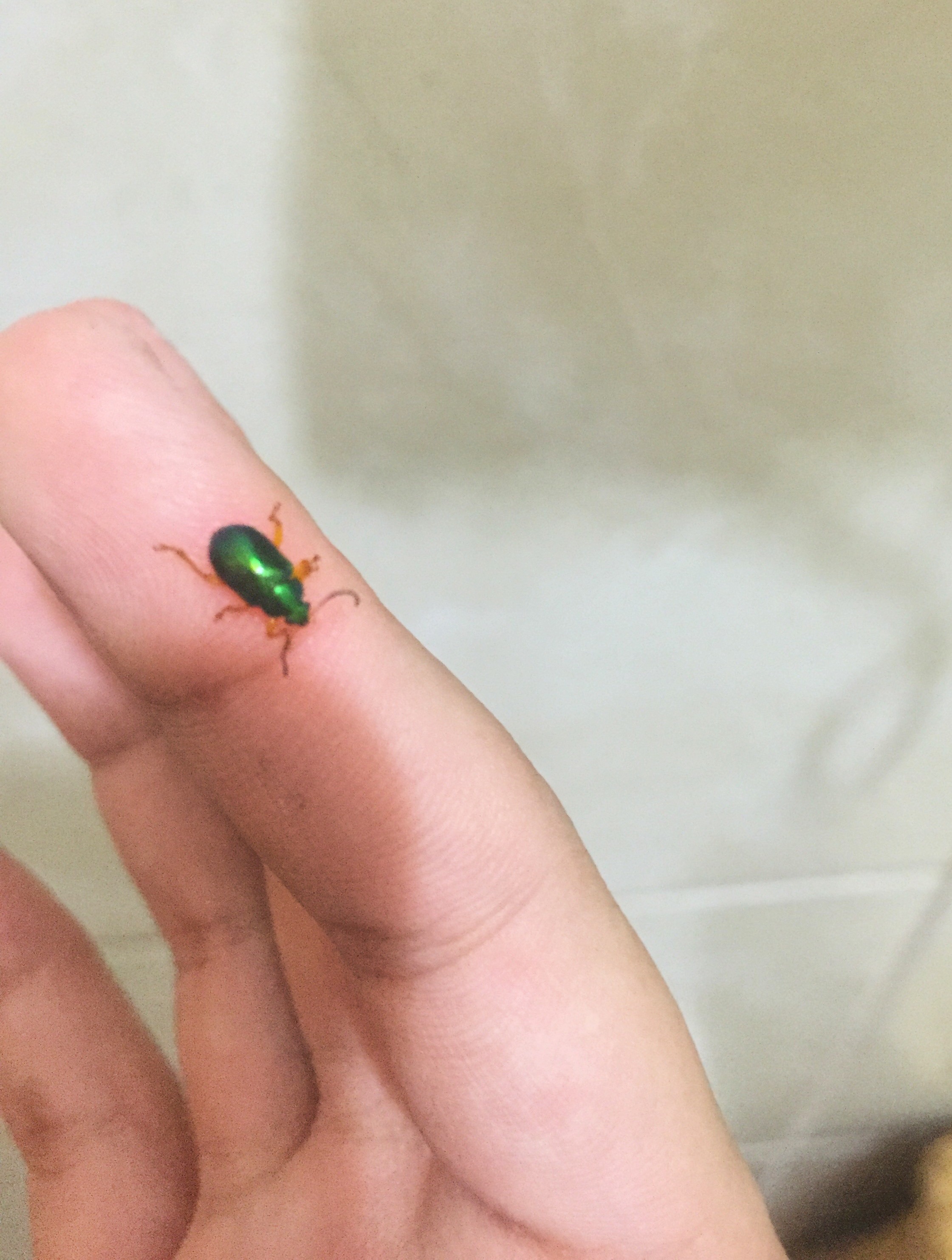 Hoje durante o banho, olhei para o chão e vi um bichinho caminhando na minha direção. Não enxergo muito bem, mas ao invés de me assustar apertei os olhos para enxergar melhor e vi um bichinho verde brilhante.